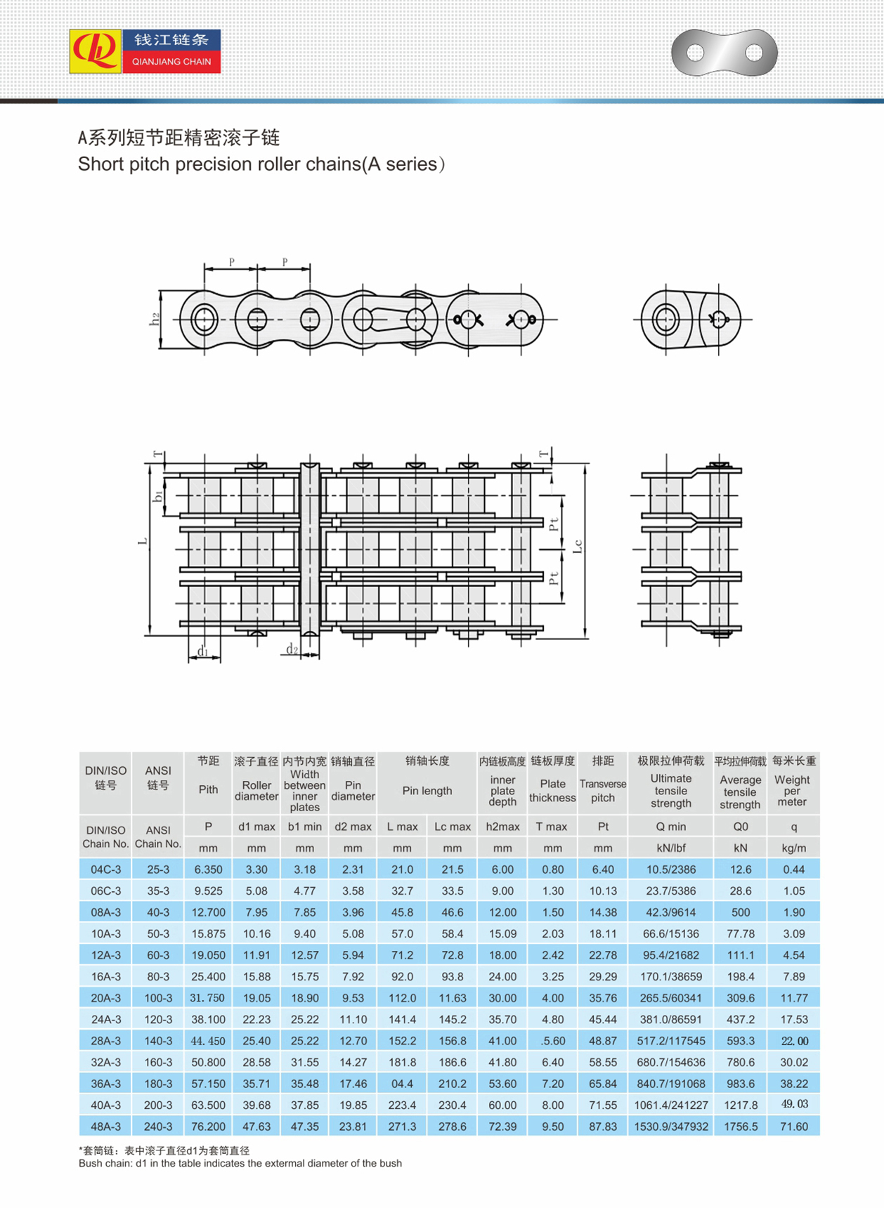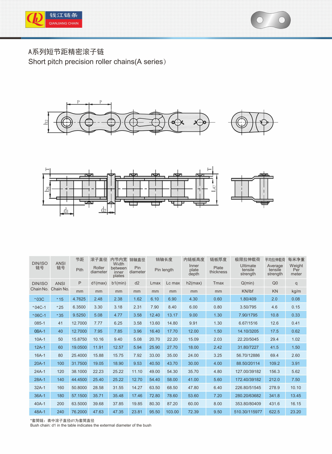 As correntes de rolos de precisão, especialmente na série A, são projetadas para alto desempenho, oferecendo precisão excepcional e operação suave. Essas correntes são projetadas com técnicas de fabricação, garantindo alinhamento preciso dos elos e melhor distribuição de carga. Isto resulta numa transferência de energia mais eficiente e num desgaste mínimo ao longo do tempo, tornando-os altamente fiáveis em ambientes exigentes.
