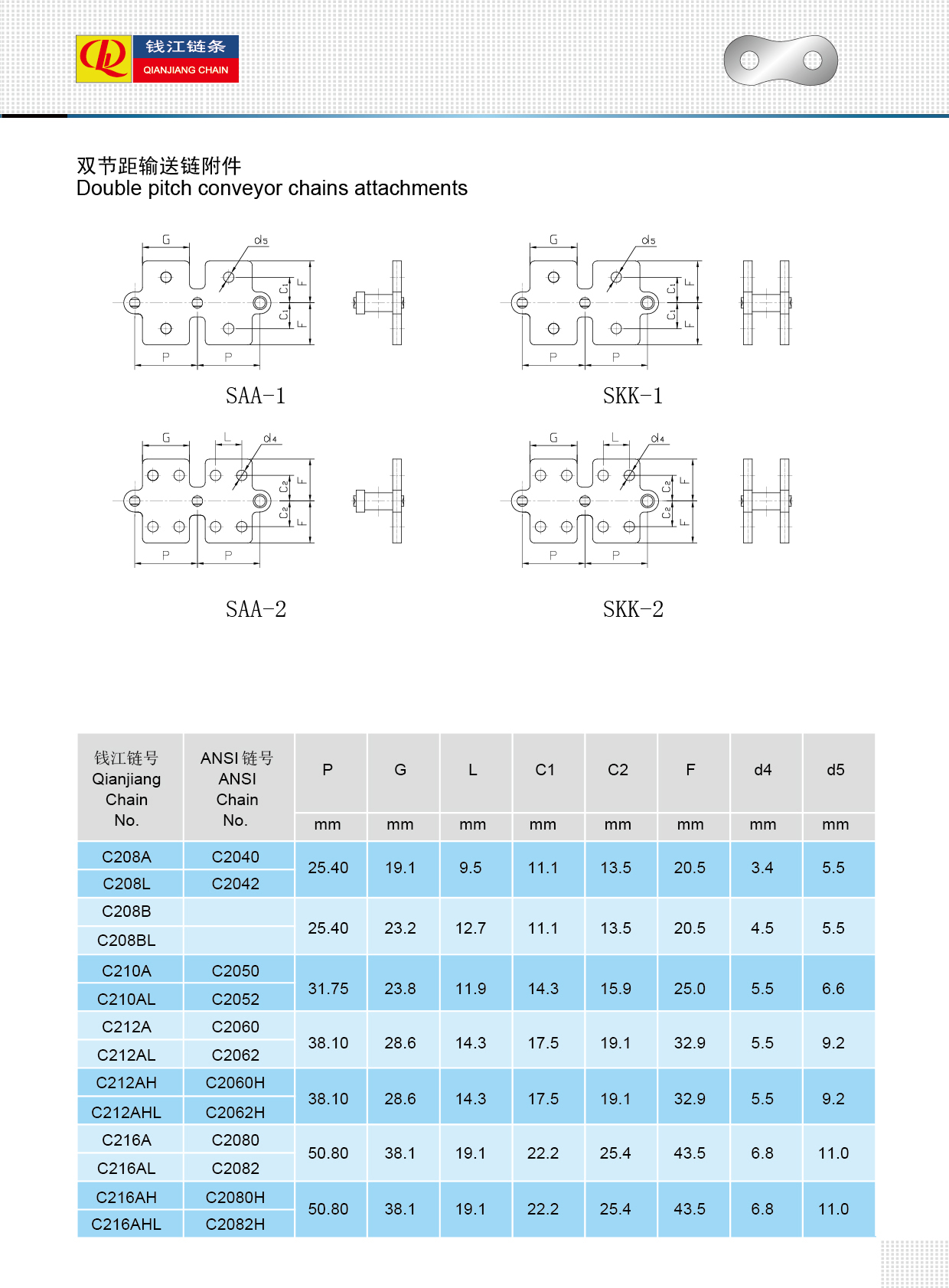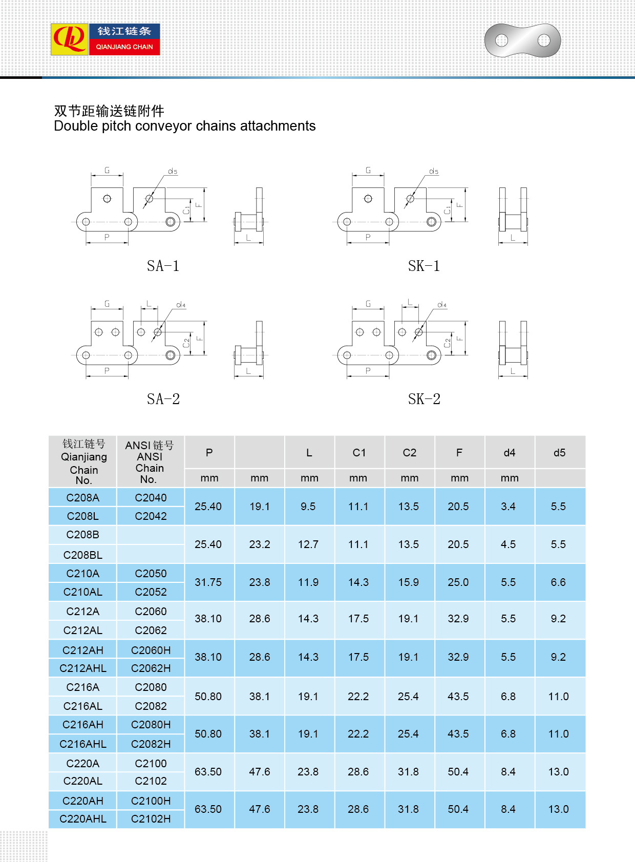 As correntes transportadoras de passo duplo com acessórios são uma solução versátil e eficiente para aplicações de manuseio e transporte de materiais. Projetadas com dimensões de passo estendidas, essas correntes oferecem uma alternativa mais leve e econômica às correntes transportadoras padrão, mantendo alta resistência e durabilidade. A principal característica dessas correntes são seus acessórios personalizáveis, que podem ser adaptados para atender a necessidades operacionais específicas – seja no transporte de produtos horizontalmente, verticalmente ou em curvas. Esses acessórios mantêm os itens no lugar com segurança durante o transporte, garantindo um movimento suave e confiável mesmo em ambientes exigentes.