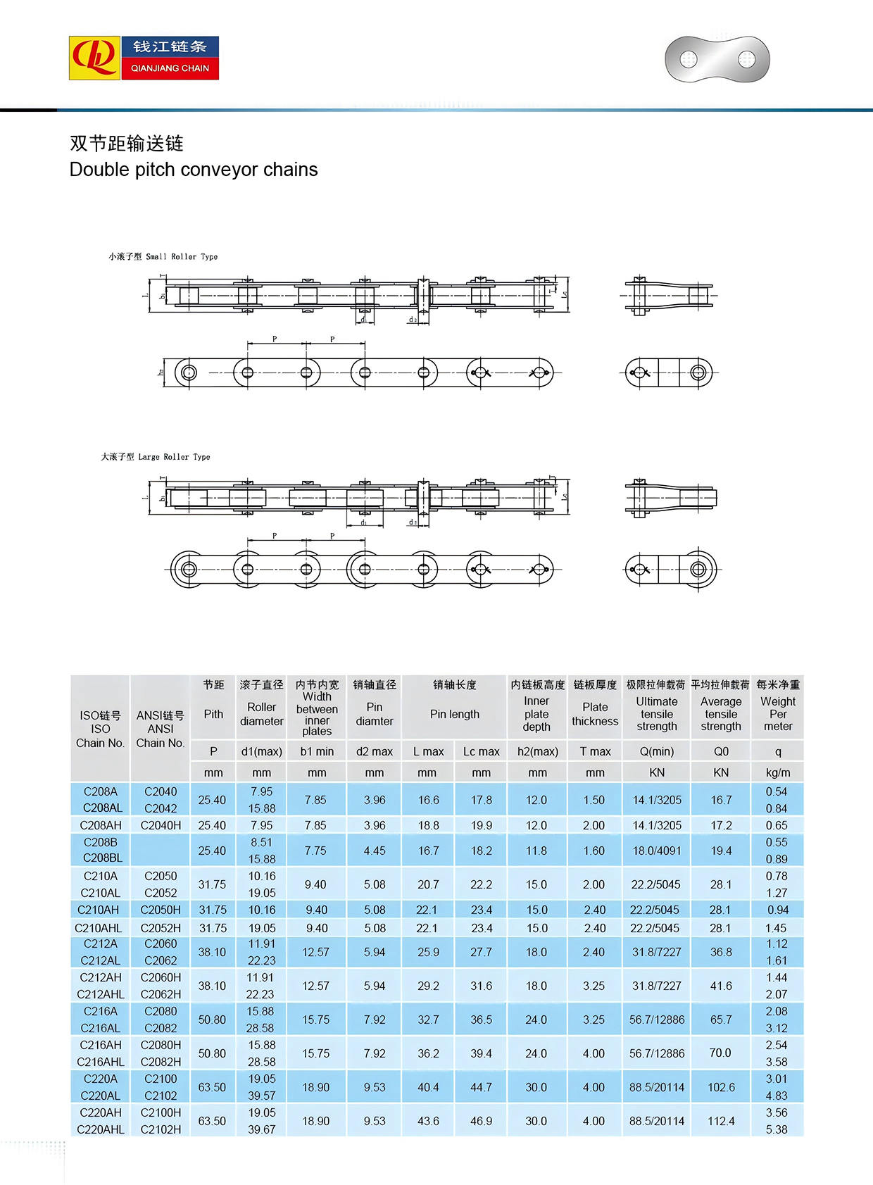 Correntes transportadoras de passo duplo