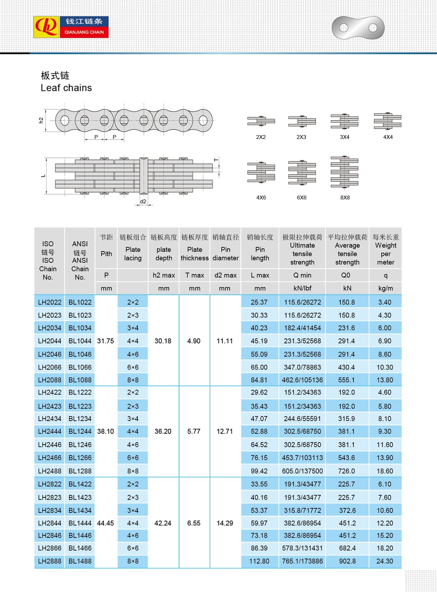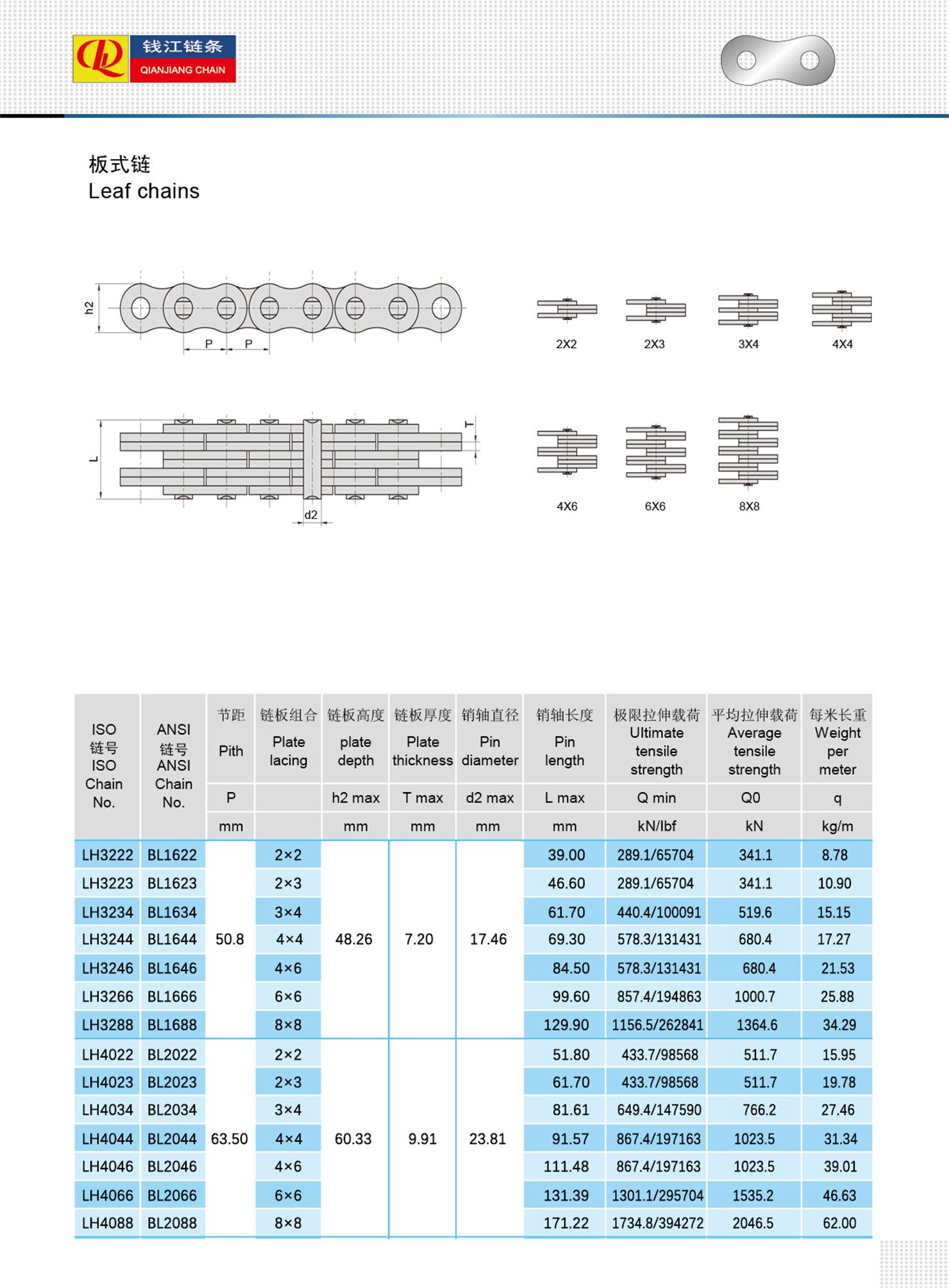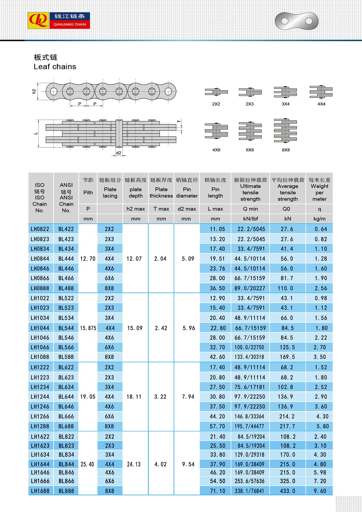 Comumente usadas em empilhadeiras, sistemas de manuseio de materiais e dispositivos de elevação, as correntes de folhas LH (série BL) são ideais onde a resistência e a confiabilidade são cruciais. Sua alta resistência à fadiga e resistência ao alongamento os tornam adequados para levantamentos repetitivos e tarefas pesadas.