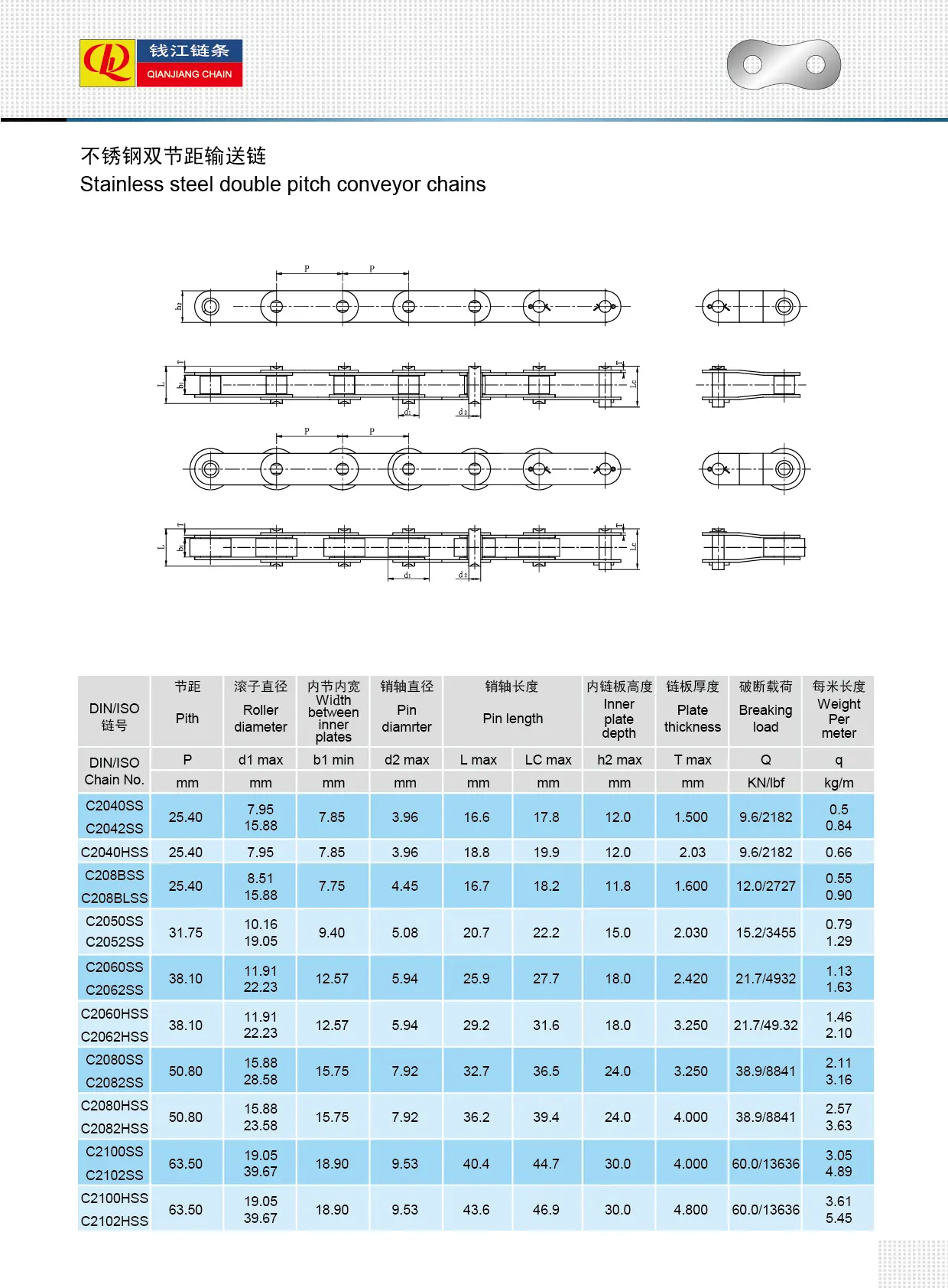 Projetadas com resistência e longevidade em mente, as correntes transportadoras de passo duplo de aço inoxidável são fabricadas em aço inoxidável de alta qualidade, tornando-as resistentes à corrosão, ao desgaste e às condições ambientais. A sua construção robusta garante um desempenho fiável mesmo sob cargas pesadas, reduzindo significativamente os custos de manutenção e o tempo de inatividade.